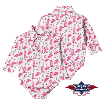 Stars & Stripes Baby Cowgirl – baby bodystock med cowgirl-motiv og skjorte-look