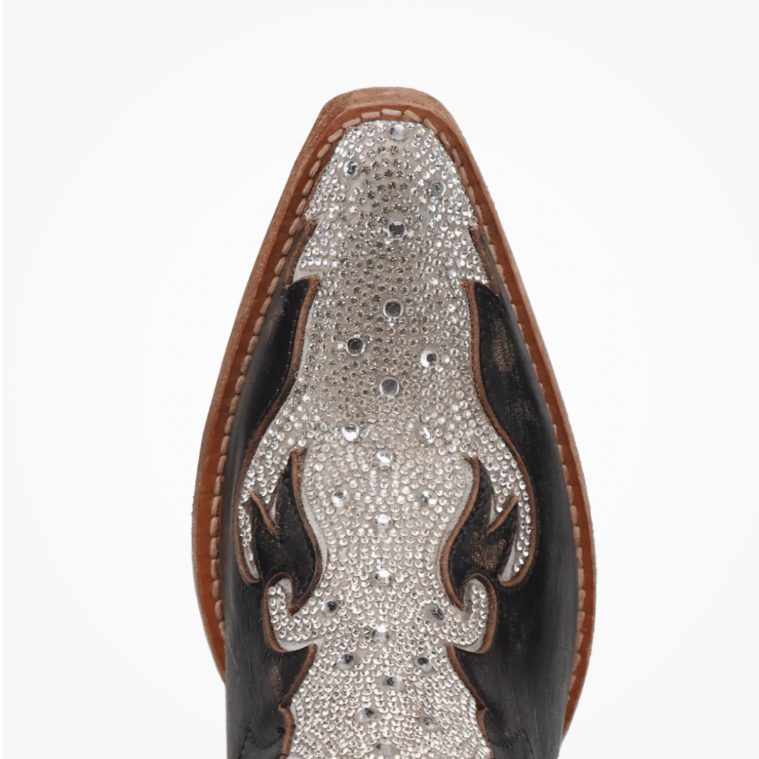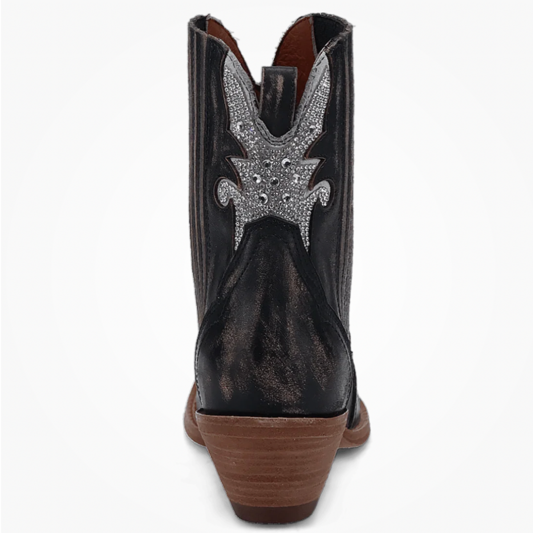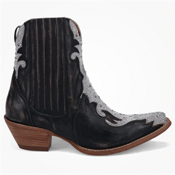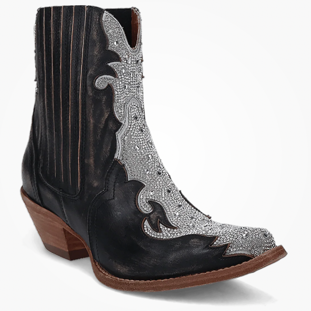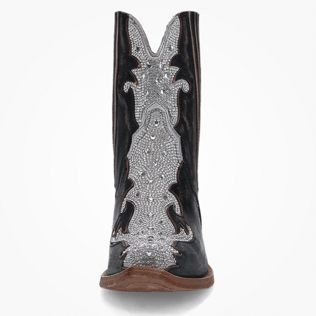 Dan Post | Women's Crystal Western Boot er en glitrende, sort westernstøvle med 6" skaft, snip toe og medium cowboyhæl. Rhinestones og læderforing – komfortabel Ultimate Flex indersål.
