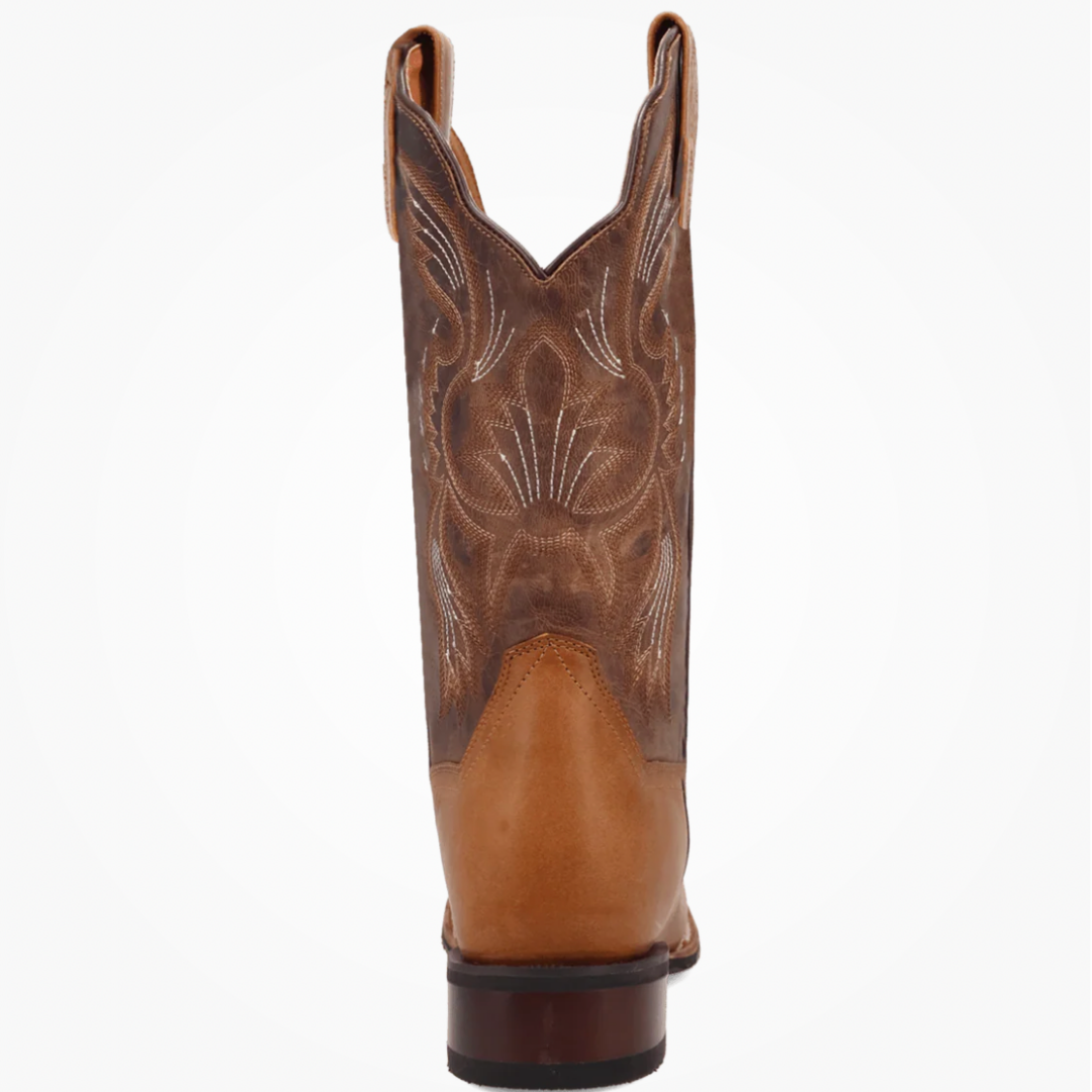 JILLIAN står højt og stolt med et skulptureret 12" skaft prydet af traditionel westernsygninger. Den varme tan‑bund kontrasteres af diskrete nuancer i skaftet, der tilfører dybde og patina‑effekt. De praktiske pull‑straps gør det nemt at komme i dem, og proportionerne er afstemt, så støvlen sidder sikkert om anklen uden at klemme.
