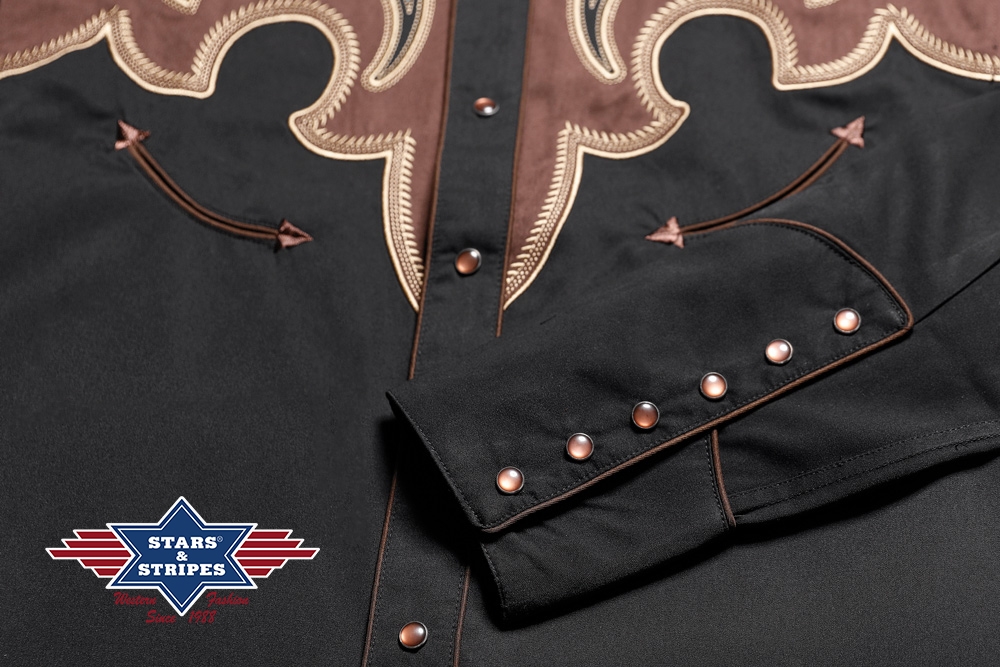 Alaric er til dig, der vil have en sort westernskjorte med kontrast‑bærestykke og piping – en gennemført model, der er lige så behagelig, som den er iøjnefaldende. Kombinationen af præcist broderi, velafstemt pasform og robust materiale, gør den til en garderobeinvestering, du kan bruge igen og igen – fra hverdag til weekend og videre til scene‑ eller dansegulv.