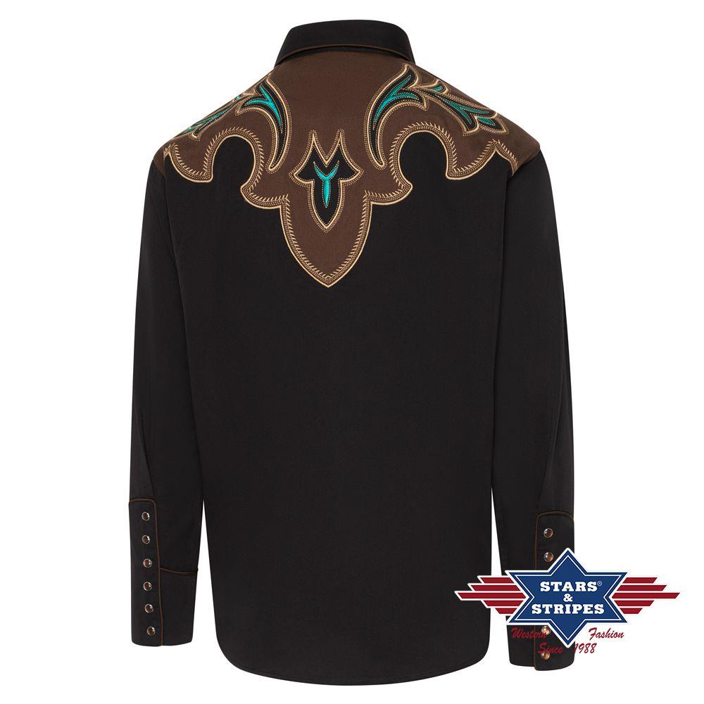 • Sort herre‑westernskjorte med kontrast‑bærestykke