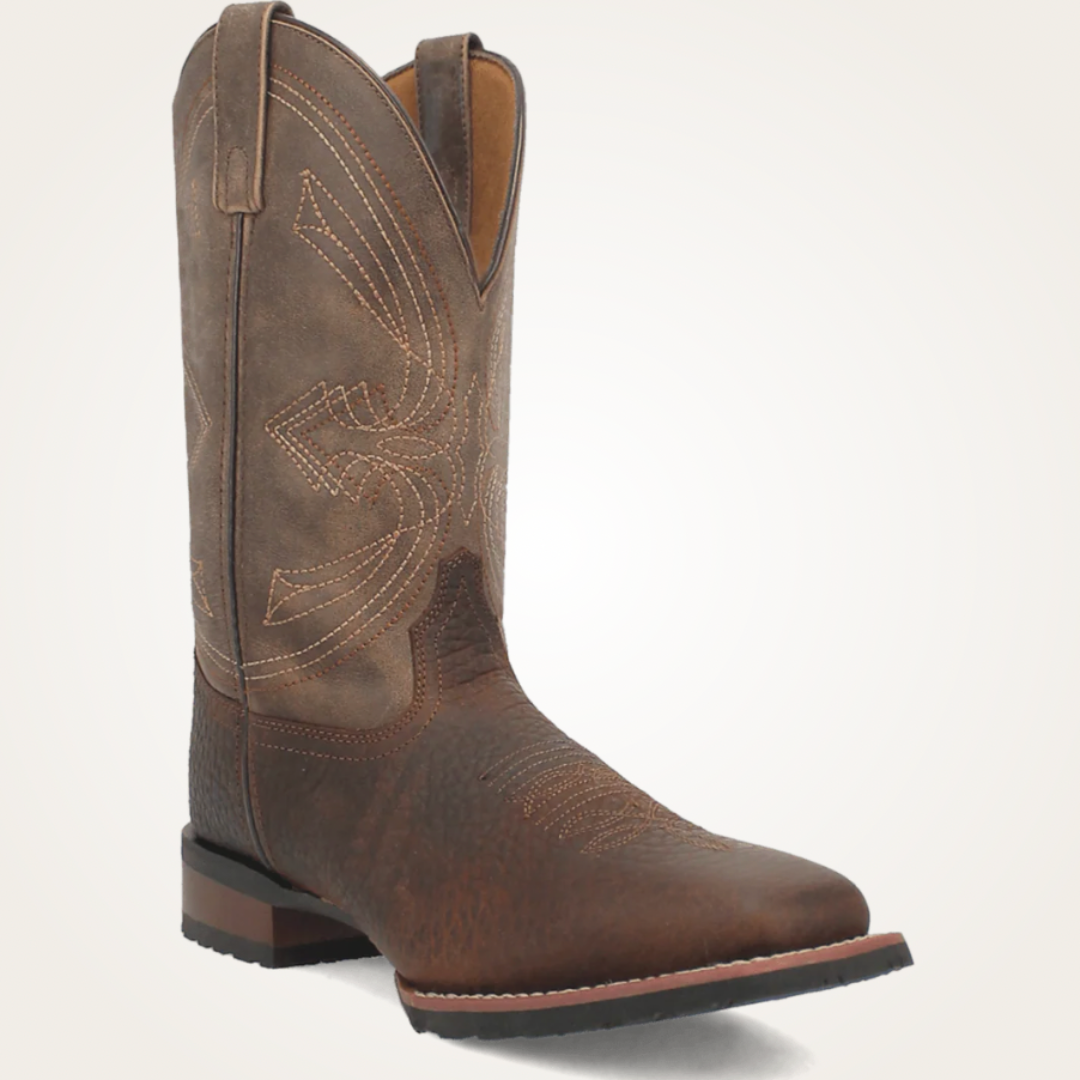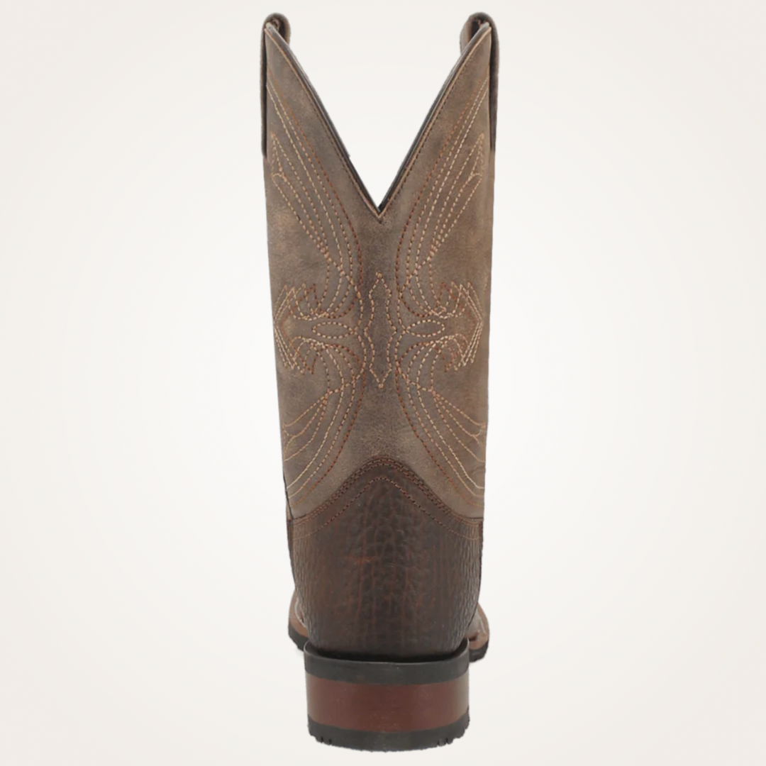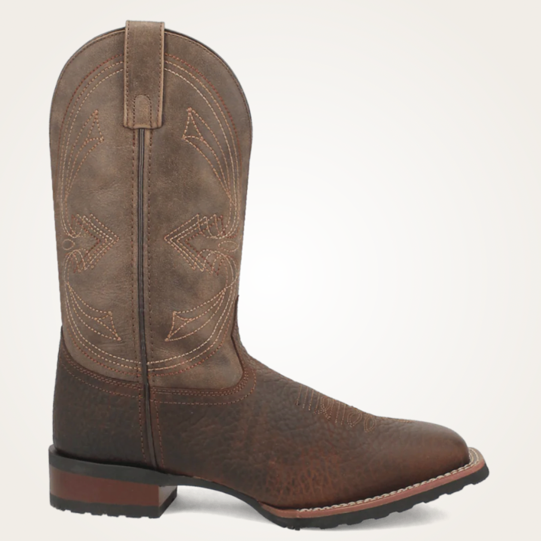 Laredo | Men's Elias Western Boot er en robust herre-westernstøvle i chocolate/tan læder med 11" skaft, bred firkantet tå, stockman-hæl og udtagelig indlægssål.