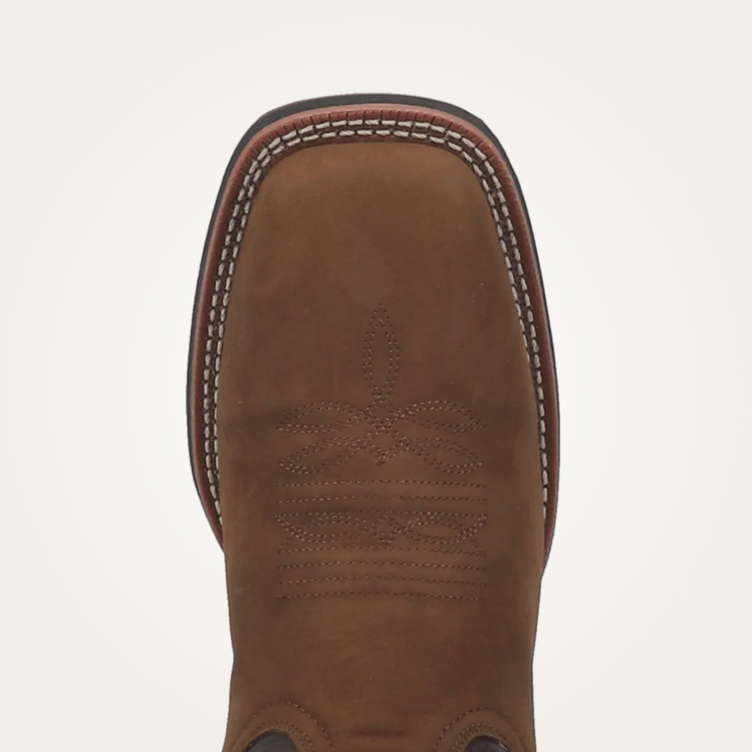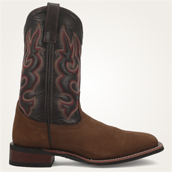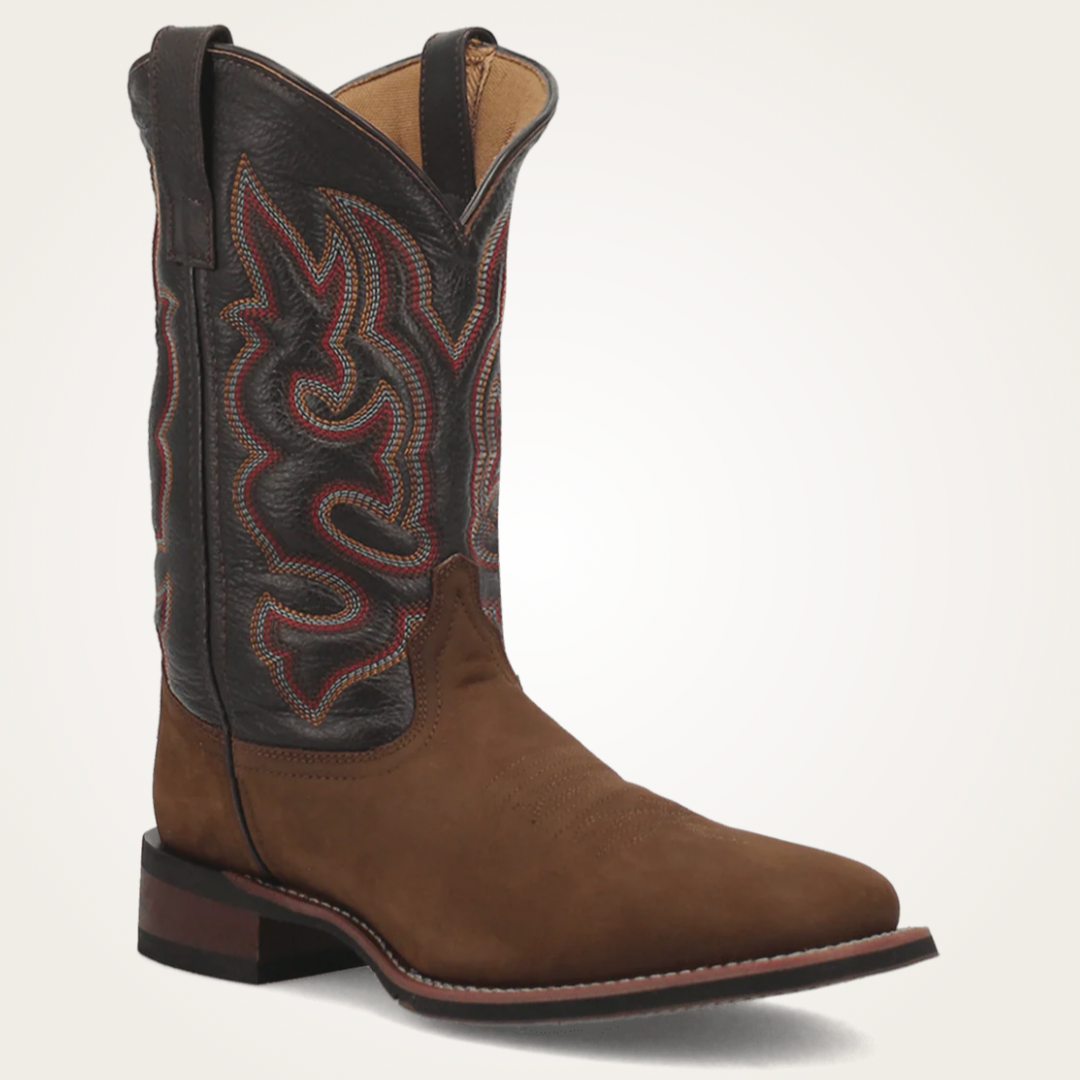 Laredo LODI er en robust og alsidig herre‑westernstøvle, der kombinerer klassisk ranch‑æstetik med komfort til hele dagen. En kvalitetslæder‑fod er koblet med et læderlignende skaft med traditionel western‑stikning, som giver et markant, men afbalanceret udtryk. Den brede square toe aflaster foden, mens den stabile Stockman‑hæl og den Cowboy Approved ydersål i gummi sikrer tryg gang på varierende underlag – fra byens fortove til turen ud af grusvejen.