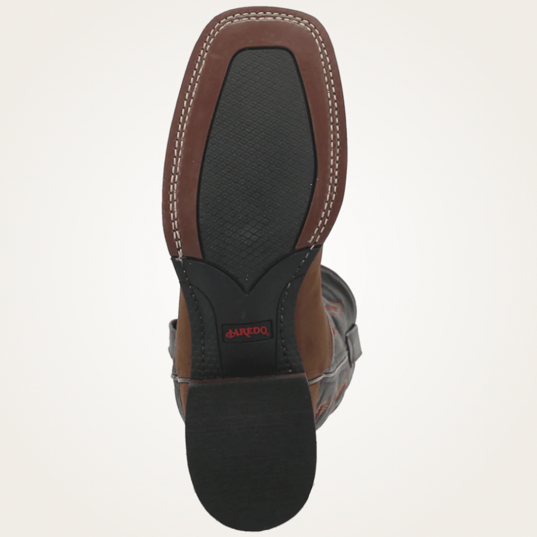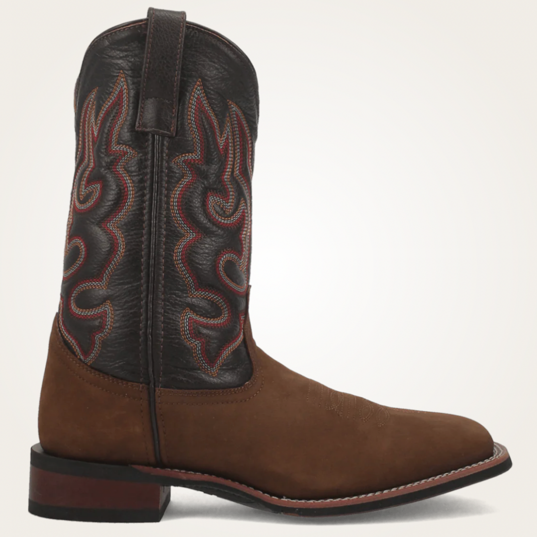 Laredo | Men's Lodi Western Boot er en herre‑westernstøvle i læder med 11" skaft, bred square toe, Stockman‑hæl og blød Cushion indersål. Cowboy Approved gummisål for holdbar komfort.