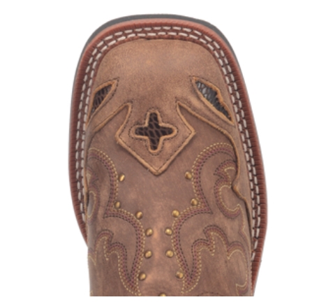 Laredo SPELLBOUND i farven Tan, er en favorit med sit rå, rustikke look og fine detaljer, der forener ikonisk cowboy‑stil med moderne komfort. Silhuetten er slank og feminin, detaljerne er gennemarbejdede, og materialerne er valgt til lang holdbarhed i daglig brug. Resultatet er en støvle, der er lige så hjemme i byen som i stalden.
