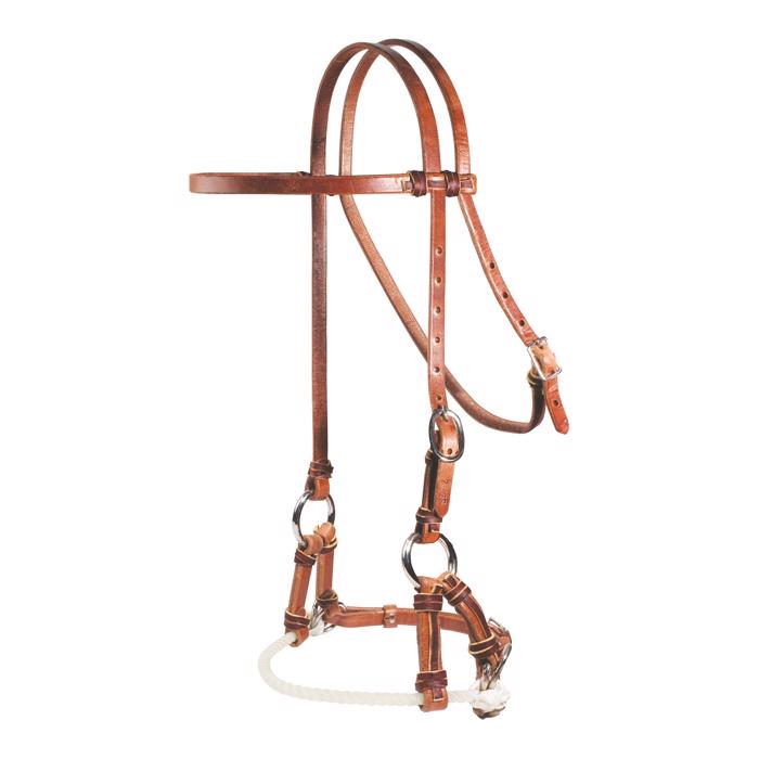 Nylon lariat rope noseband with harness leather headstall. Hermann Oak Leather.