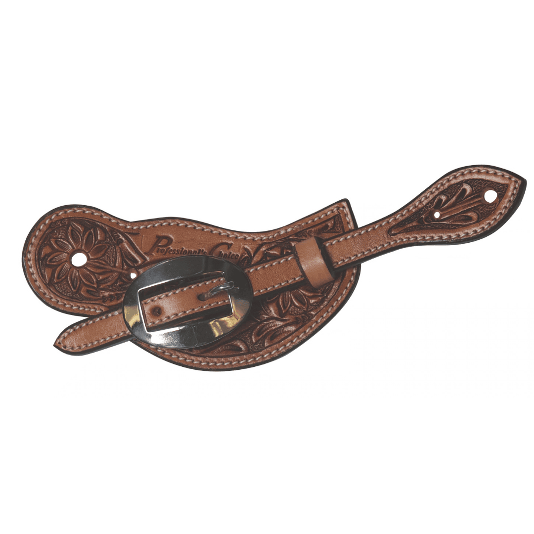 Professional's Choice Sunflower Spur Strap til kvinder er et stilfuldt og funktionelt valg til ryttere, der ønsker at kombinere klassisk western-inspireret design med holdbare materialer og flotte detaljer. Denne sporerem er fremstillet med et dekorativt håndtool’et mønster, hvor solsikke og blade skaber et eksklusivt, traditionelt udtryk, som passer perfekt til både hverdagsridning, træning og stævnebrug. Den smukke udformning giver produktet et markant og personligt look, som skiller sig ud uden at gå på kompromis med funktionaliteten.