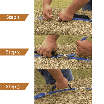 Den kraftige cam buckle er designet til at holde spændingen stabil, så ballen ikke løsner sig under transport. Det giver en mere kontrolleret håndtering og gør det lettere at flytte hø fra opbevaring til staldgang, fold, trailer eller foderområde. Den robuste konstruktion i slidstærk webbing er skabt til daglig brug og til et miljø, hvor udstyret skal kunne tåle støv, friktion og gentagen belastning.