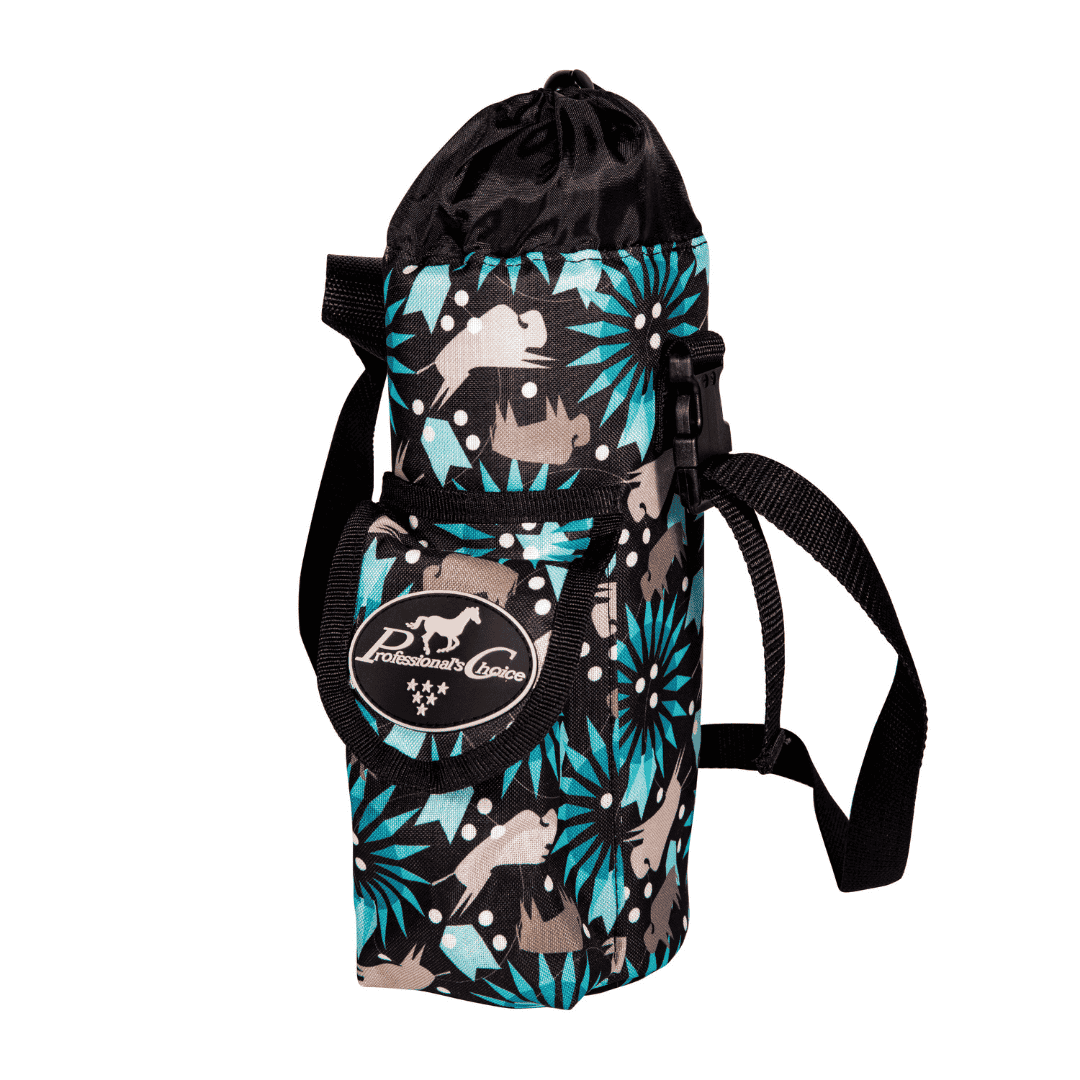 Professional's Choice Water Bottle Pouch er en slidstærk vandflaskeholder til ridning, fremstillet i 600D polyester med skulderrem, snørelukning og praktisk ophæng.