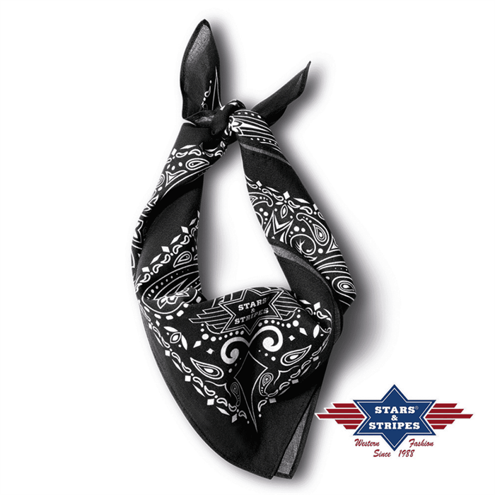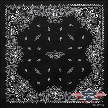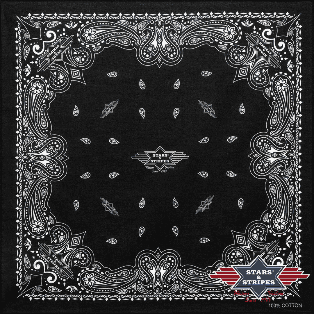 Bandanaen er lavet af 100% bomuld med det karakteristiske paisley-mønster. Det er et trendy modeaccessory, der kan bæres på mange måder, som hovedtørklæde, halstørklæde eller viklet omkring armen.