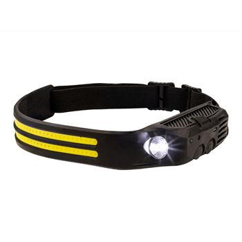 Let, genopladelig LED pandelampe med sensorstyring, spotlight og bredt lys. Perfekt til stald, gåtur med hunden, camping og arbejde.