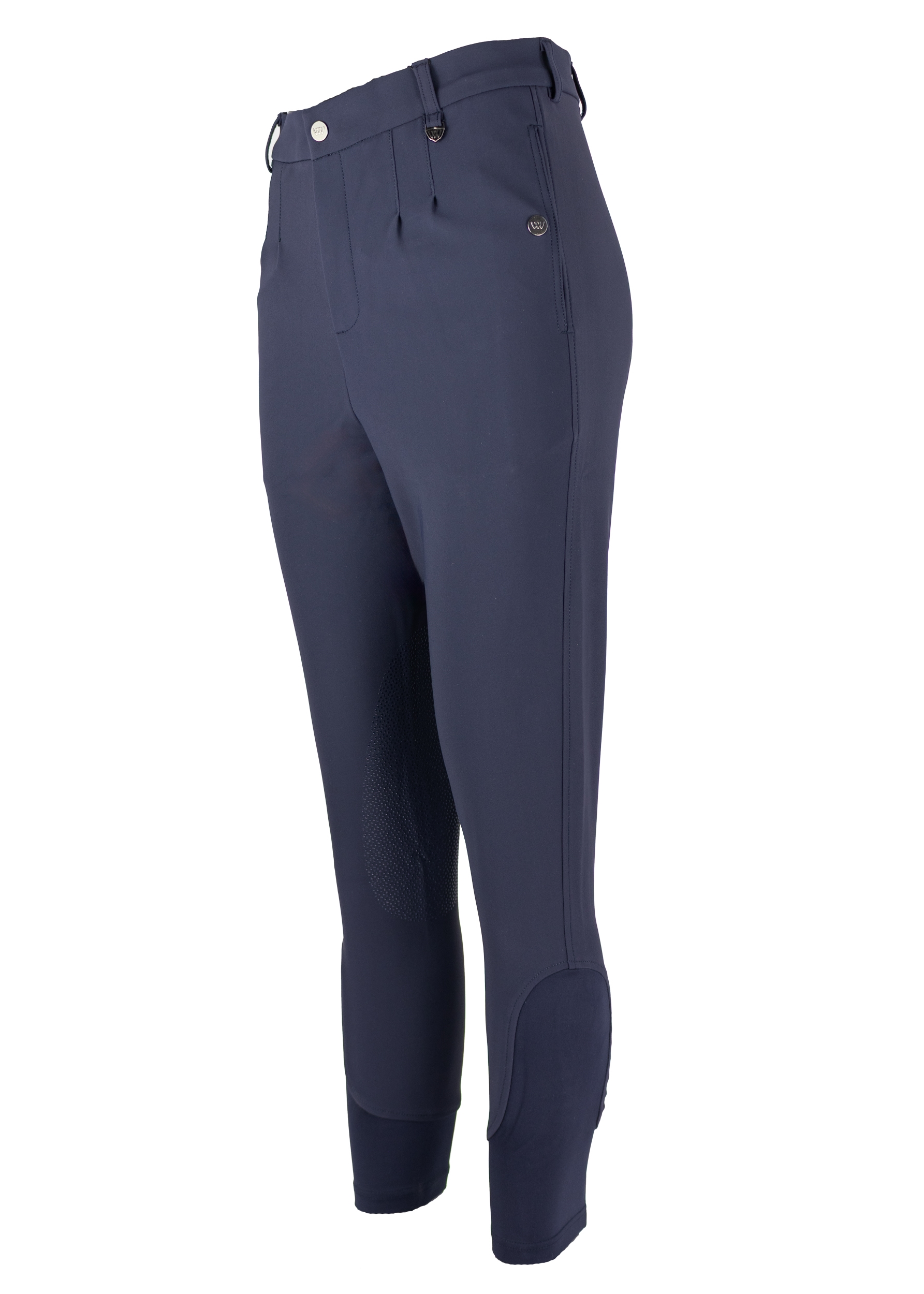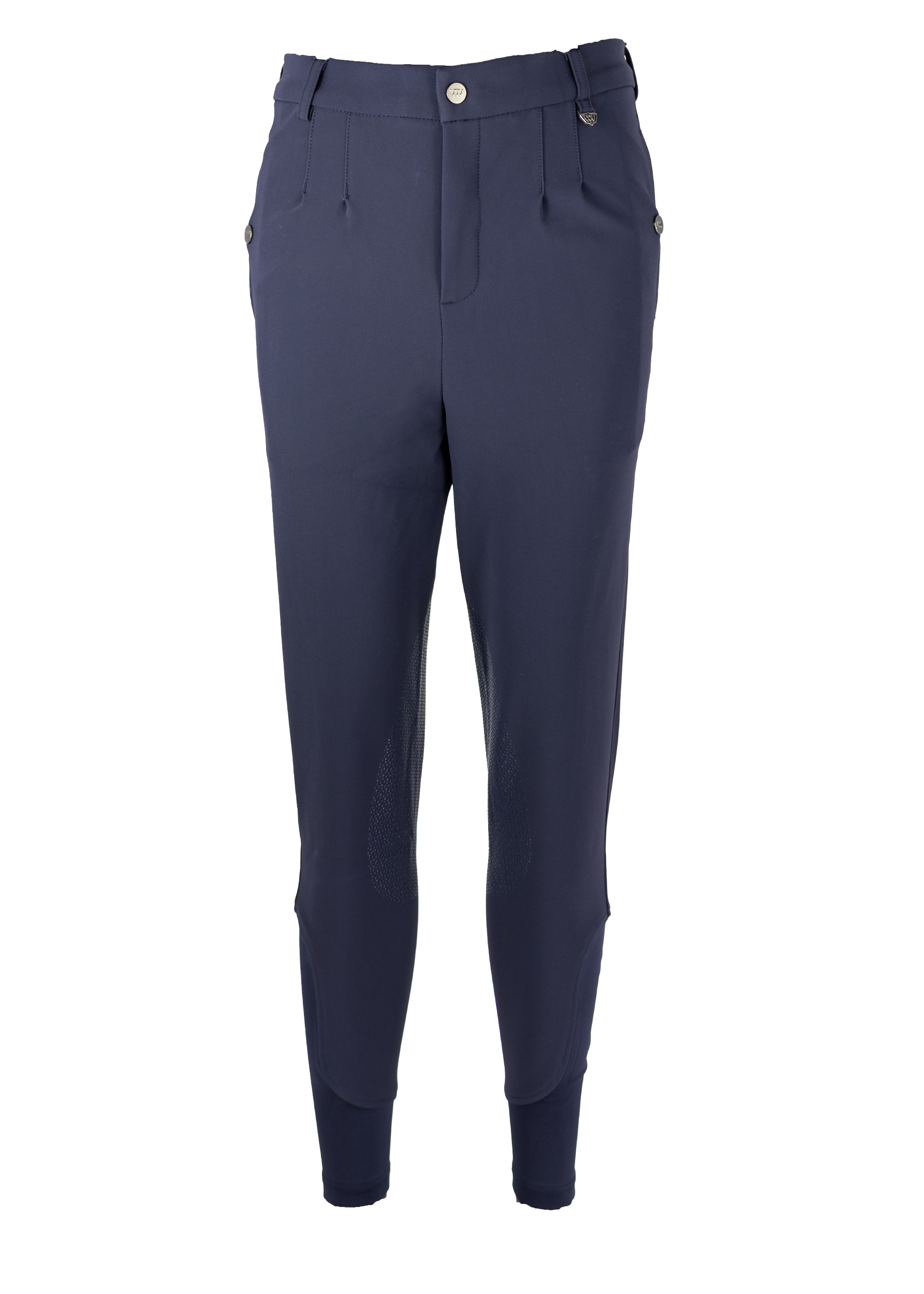 De tætsidende underben med Lycra forhindrer folder i lange ridestøvler, og silikonegrip ved knæene sikrer en stabil og glidende overgang i sadlen – en perfekt kombination af stil og funktionalitet.