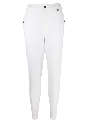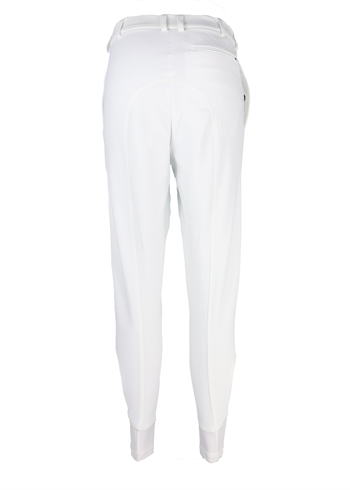 De tætsidende underben med Lycra forhindrer folder i lange ridestøvler, og silikonegrip ved knæene sikrer en stabil og glidende overgang i sadlen – en perfekt kombination af stil og funktionalitet.