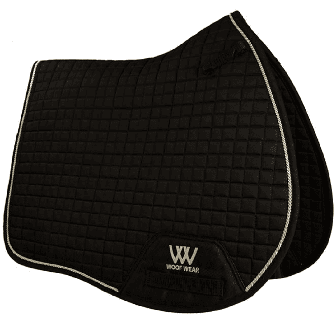 Woof Wear Contour GP Saddle Pad – Black er et alsidigt allround-sadelunderlag designet til ryttere, der ønsker stabil pasform, diskret stil og pålidelig komfort i hestens ryg. Den anatomiske Contour-udformning følger hestens toplinje og giver ekstra plads ved manken, så underlaget ligger glat uden folder og minimerer trykpunkter under sadlen. Det gør underlaget ideel til daglig træning og spring, hvor god svedhåndtering og stabil sadelkontakt er afgørende. Forstærkede områder ved gjordstrømpen beskytter mod slid fra gjorden og sikrer, at underlaget holder formen – også når du spænder efter.