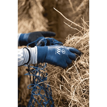Woof Wear Winter Yard Gloves – Navy er din nye vintermakker til alt stald‑ og gårdarbejde i koldt og fugtigt vejr. Handsken kombinerer en vandtæt overflade med en isolerende foring, så hænderne forbliver tørre og varme, mens en højgrib håndflade sikrer sikkert greb på alt fra trillebørshåndtag til våde spande. Handskens materiale er lavet, så det følger håndens bevægelser, så du kan spænde grimer, åben/lukke karabiner og håndtere små skruer uden at miste føling – også med kolde fingre.